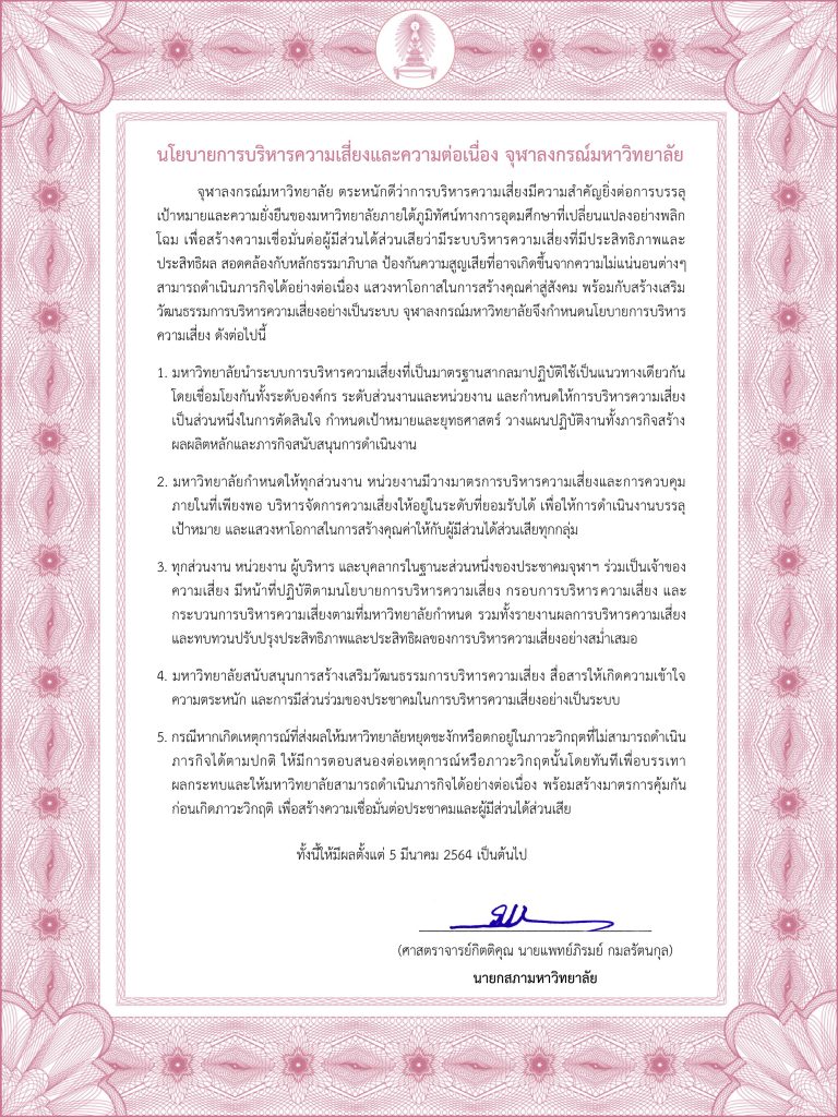 ความเสี่ยง คือ โอกาสที่จะเกิดความผิดพลาด ความเสียหาย การรั่วไหล ความสูญเปล่า หรือเหตุการณ์ที่ไม่พึงประสงค์ หรือการกระทำใด ๆ ที่อาจเกิดขึ้นภายใต้สถานการณ์ที่ไม่แน่นอน ซึ่งอาจเกิดขึ้นในอนาคตและมีผลกระทบหรือทำให้การดำเนินงานไม่ประสบความสำเร็จตามวัตถุประสงค์และเป้าหมายขององค์กร ทั้งในด้านยุทธศาสตร์ การปฏิบัติงาน การเงินและการบริหาร